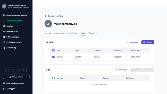 B ) Um neue Goodies Einstellungen und Budgets zu vergeben, schau dir bitte diesen Artikel an: https://support.become1.de/wie-vergebe-ich-einen-goodies-zugang/
