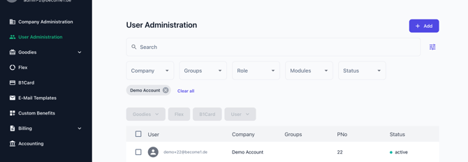 Gehe als become.1 Administrator in den Reiter „Benutzerverwaltung“.