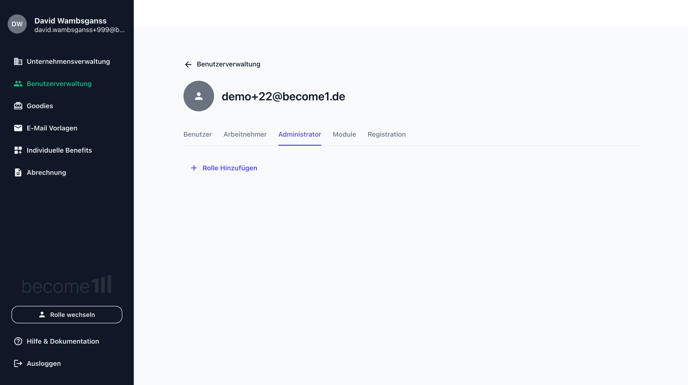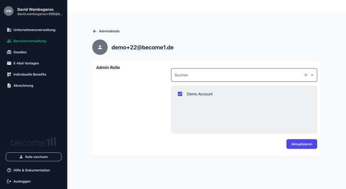 Sofern du selbst über Administratoren-Rechte verfügst, kannst du im become.1 Dashboard weitere Administratoren anlegen, oder bestehenden Benutzern Administratoren-Rechte vergeben.