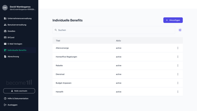 3. Über einen Klick rechts oben auf +Hinzufügen kannst du neue Benefits anlegen und kommunizieren