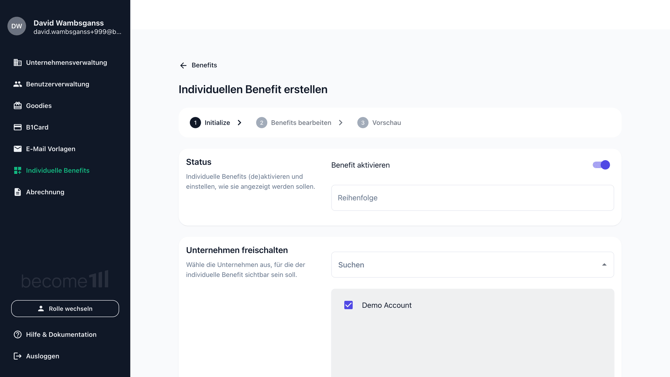 5. Solltest du mehrere Unternehmen verwalten, kannst du unter Unternehmen freischalten festlegen, ob der Benefit für einzelne Gesellschaften oder für alle ersichtlich sein soll