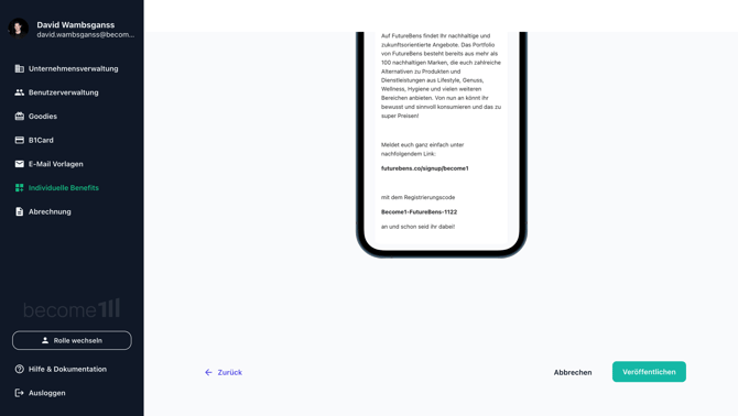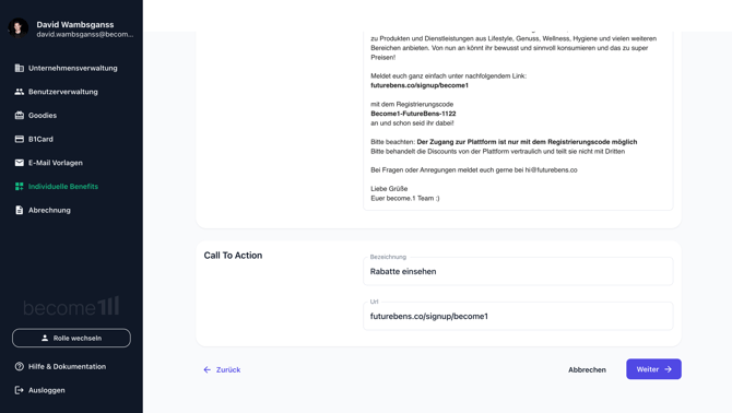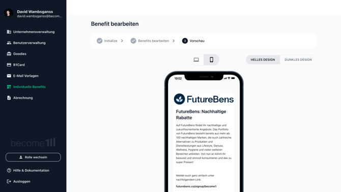 - Wähle links im Menü den Reiter Individuelle Benefits